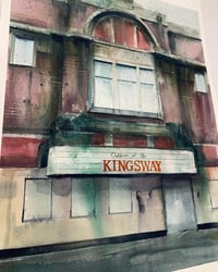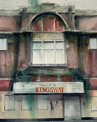 Originally a cinema, The Kingsway has evolved into a community arts venue, maintaining its cultural significance in the neighborhood. This artwork serves as a tribute to its enduring presence and the memories it holds for many.